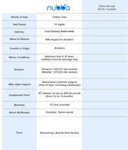 When researching other brands, make note of what matters most to you materials, return policy, pricing, or reviews. Compare it all here, and see why thousands of Americans are switching to Nubba Sleep.